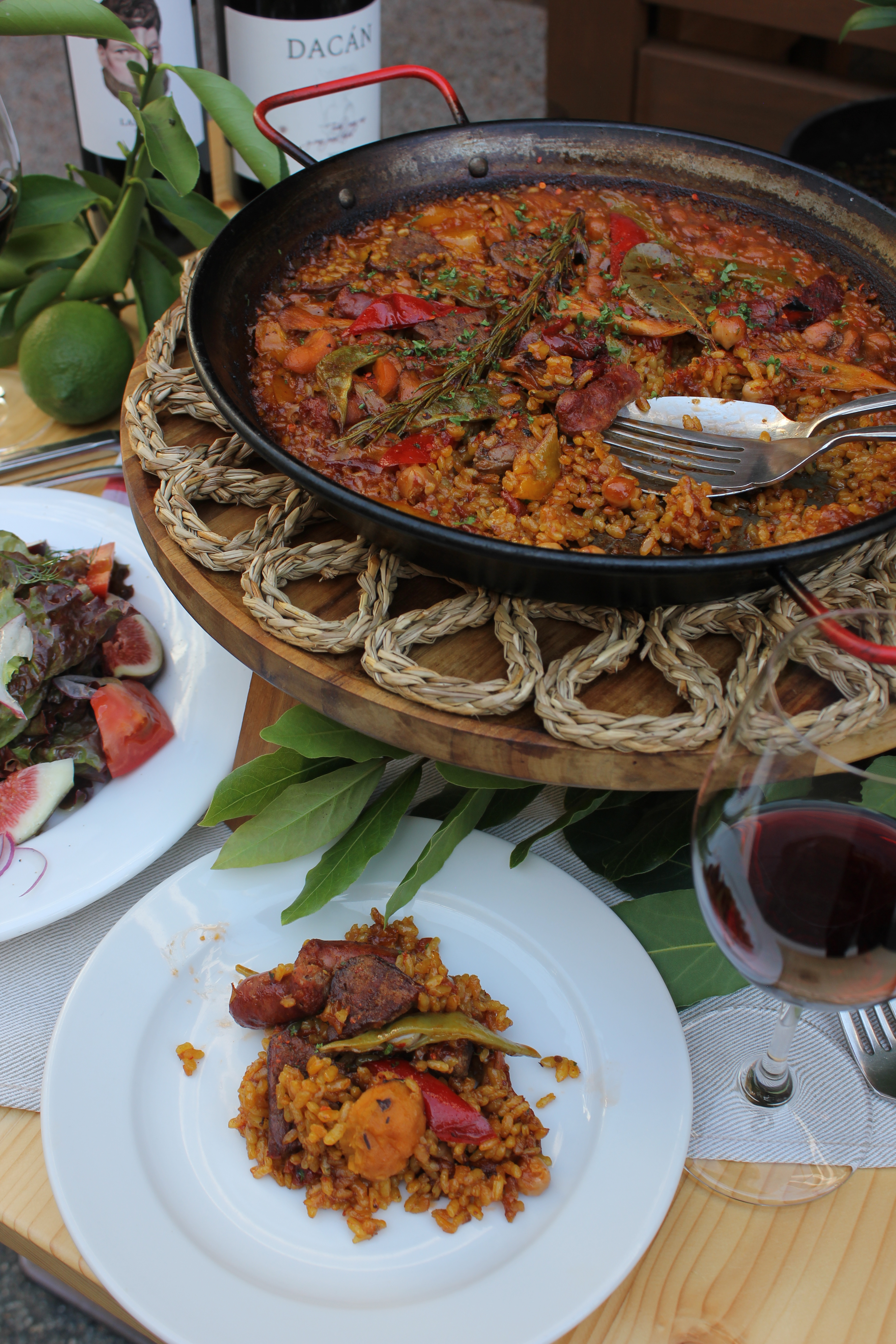 季節のパエリア“スペイン産パプリカ風味のソーセージロンガニサと栗とキノコのパエリア”です。